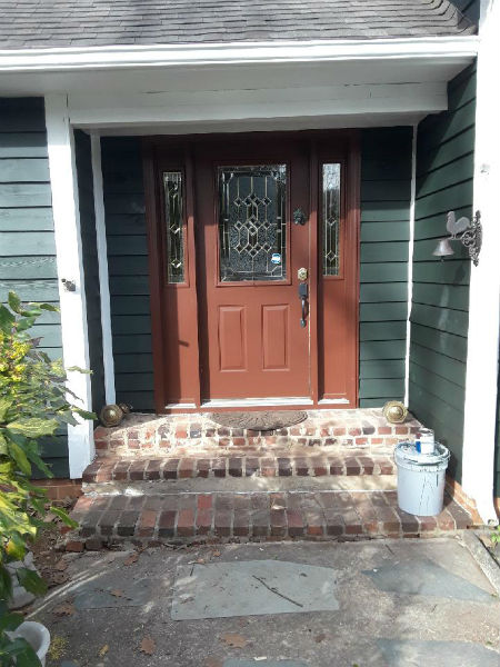 This was a large scale exterior painting project in High Point that involved a full exterior painting and siding front replacement. We started by removing the existing front siding of the house and then soon moved on to painting the entire exterior of the home. The siding color was Jasper with a semi gloss white trim. The doors were painted red - providing an appealing contrast to the main entrance of the home. Every painted surface received 2 coats to ensure a smooth and even finish.