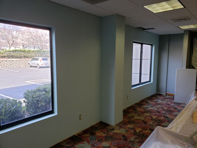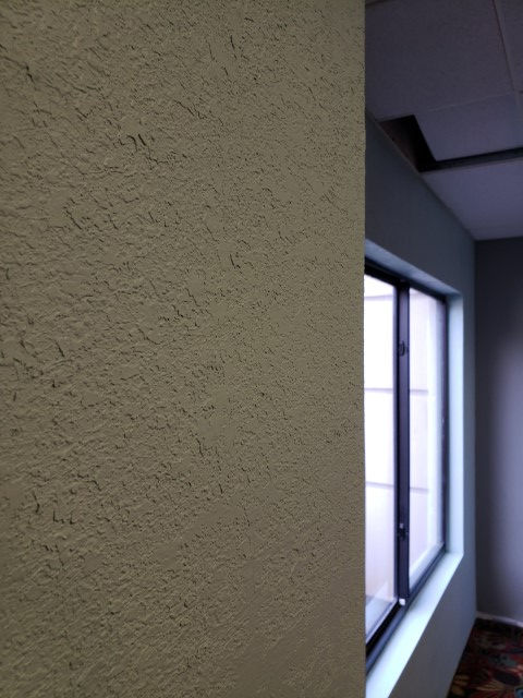 For this project, we were hired to removed the old wall paper in the hotel's meeting room. We then proceeded to repair any of the damaged sheetrock. After the repairs, we primed with walls then applied a knockdown texture. Afterwords, we finished with two coats of paint.