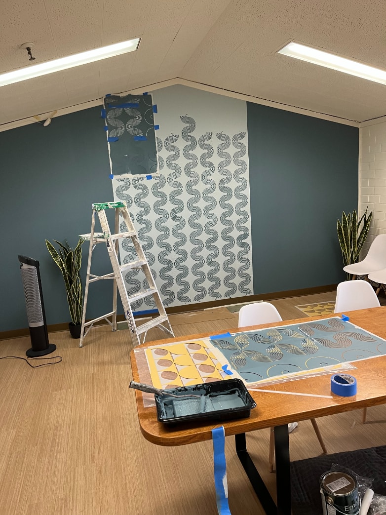 We completed a job with offices and a front lobby that consisted of walls repairs, patching and sanding. Primer on the walls and 2 coats of finish, customer color. We also completed stenciling on the accent walls.